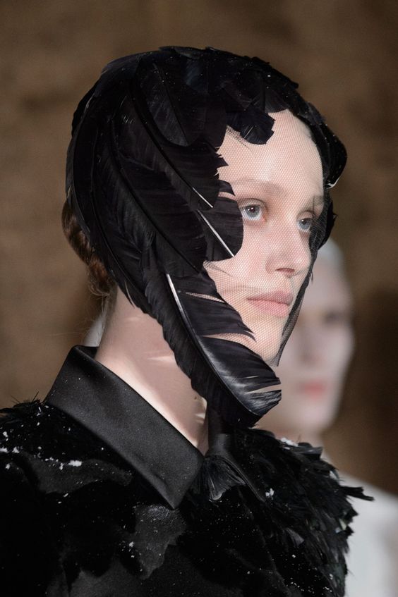 From a sartorial viewpoint, feathers have been utilized for their colours and textures, showcasing excess and flamboyancy, crafted into hair accessories and on some occasions, the hair itself. Whether as an ornamental statement piece or ethereal detail; feathers exaggerate movement, add another perception of texture, and provoke a mood.