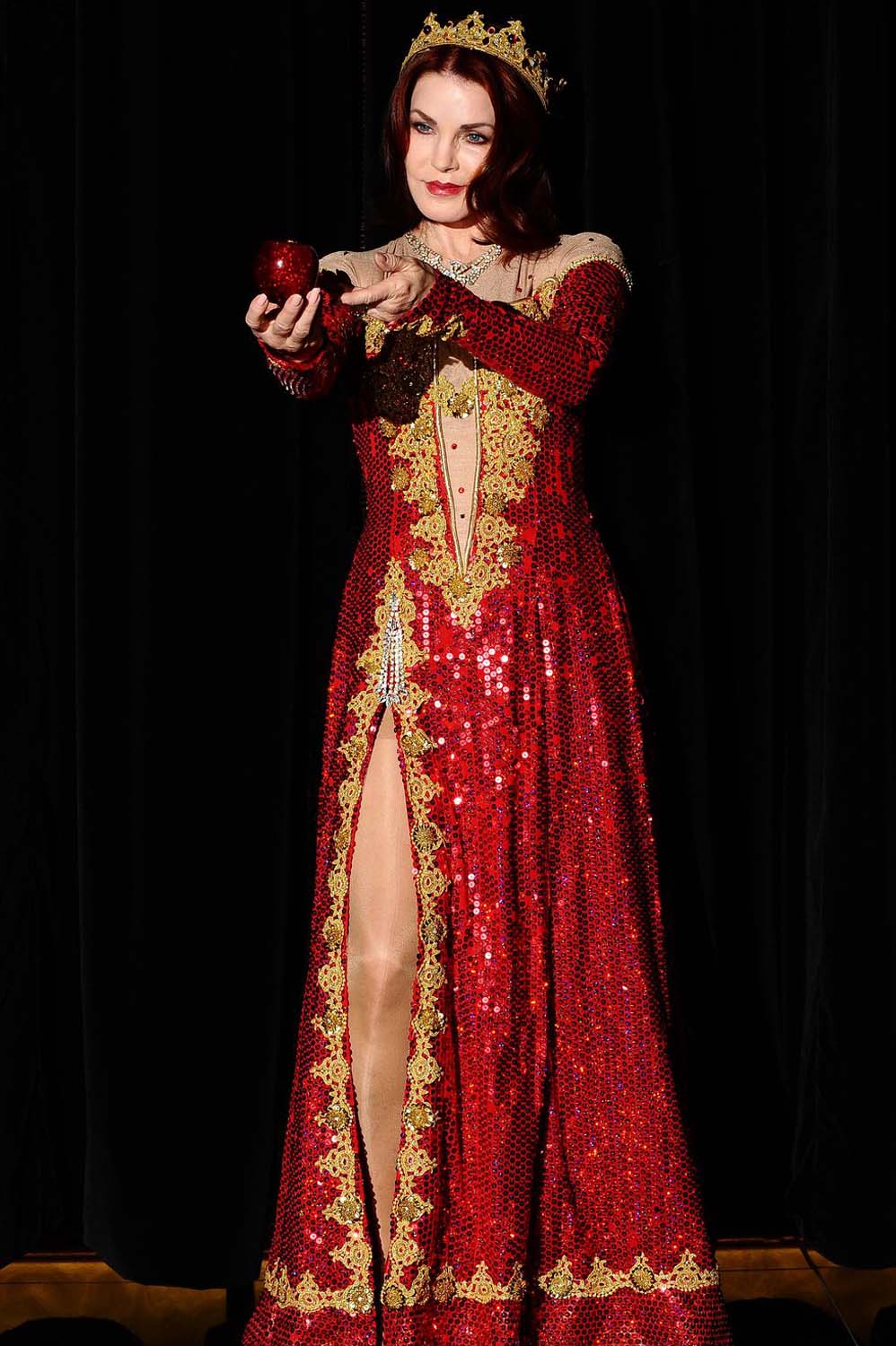 The Wicked Queen with Cherry red waves in Snow White and the Seven Dwarfs at the New Wimbledon Theatre.