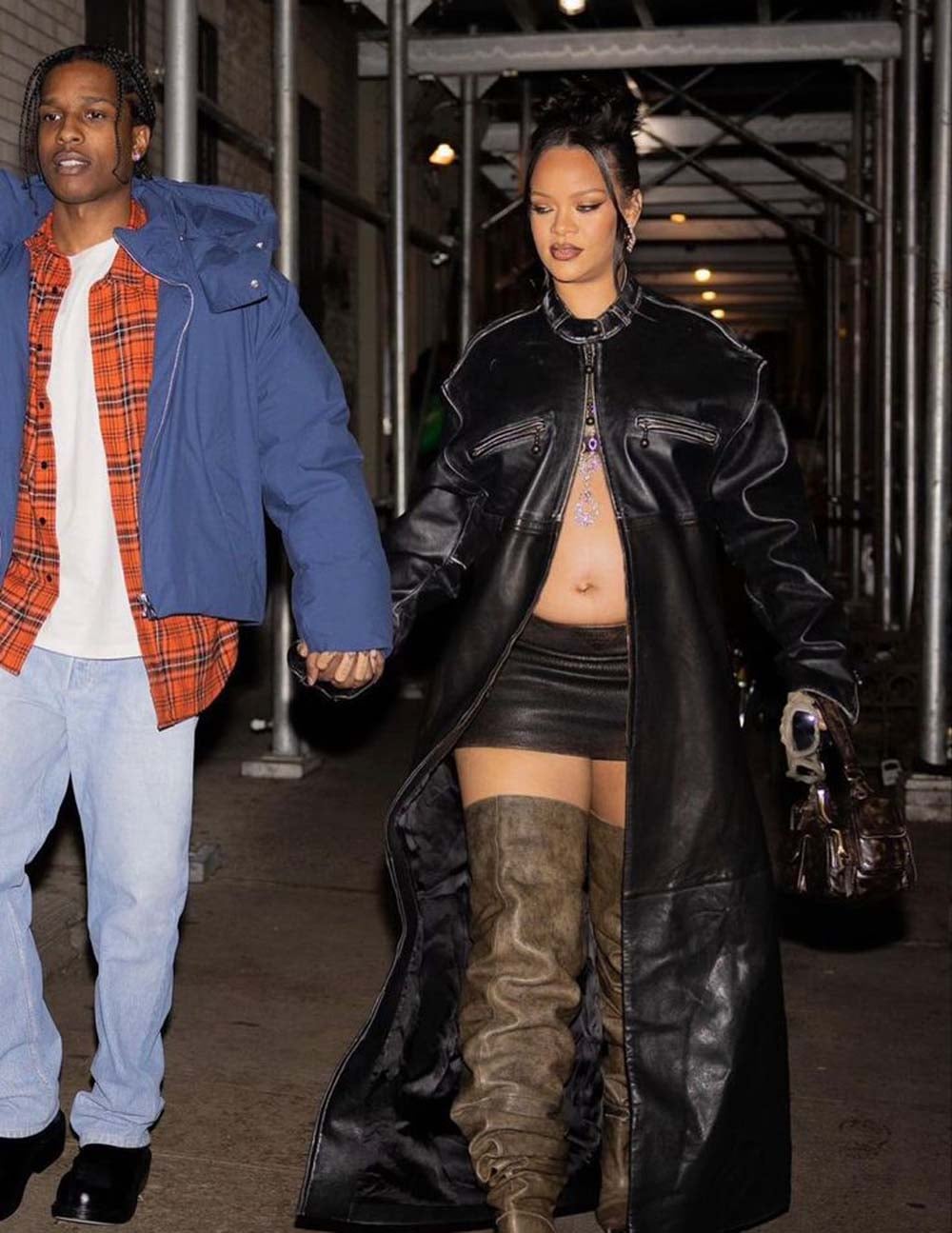 RiRi showing us how to do date night in head to toe bold leather pieces in May 2023.