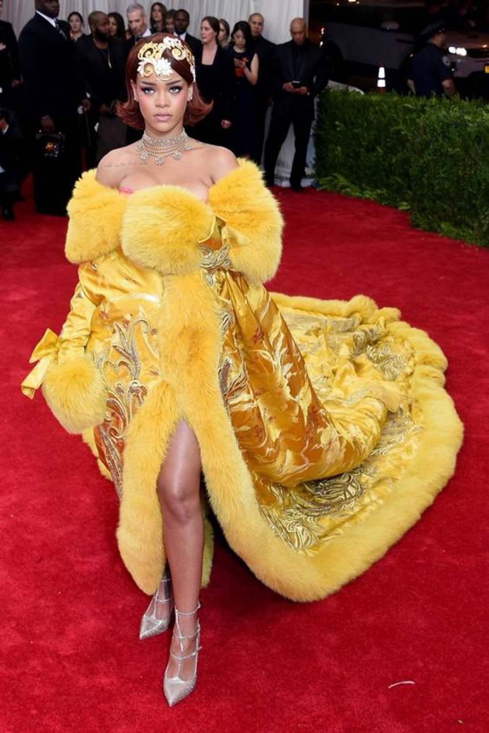 Rihanna at the 2015 Met Gala, themed China: Through the Looking Glass, wearing Guo Pei's beautiful creation that weighed 25kgs and took 50,000 hours of hand embroidery.