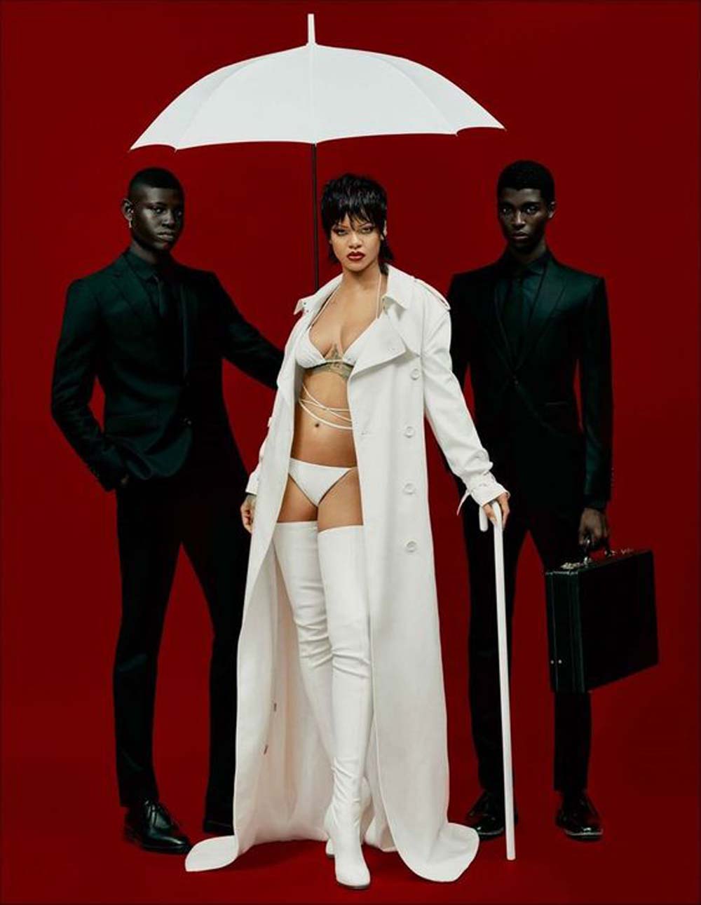 Rihanna under her umbrella (ella, ella, eh, eh) for Dazed Magazine in 2021.
