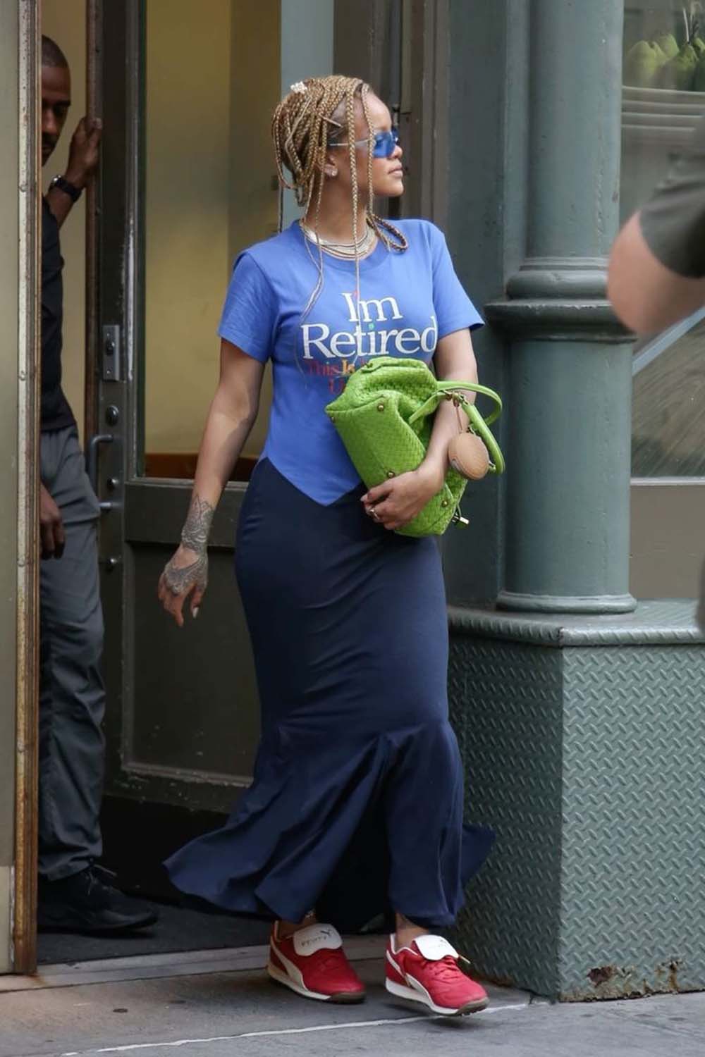 Another was in 2017 when Rihanna announced the launch of Fenty Beauty, unleashing the "Fenty Effect" onto the world of make up lovers through her new wave of inclusivity and representation due to her 40-shade foundation line. Her most recent shattering of the internet moment, however, was just a few weeks ago in NYC when she stepped out in a slogan T-shirt dress with the words "I'm retired" splayed across her chest.