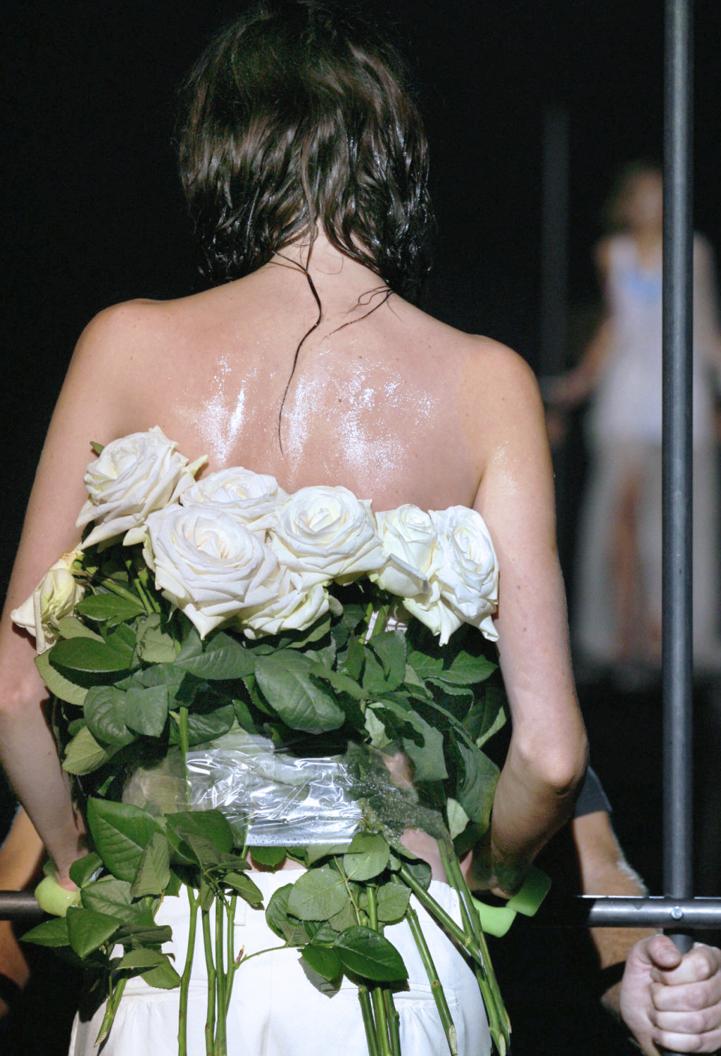 We're here for this modern wedding wet look. And while we're here, why carry a bouquet when you can wear one?