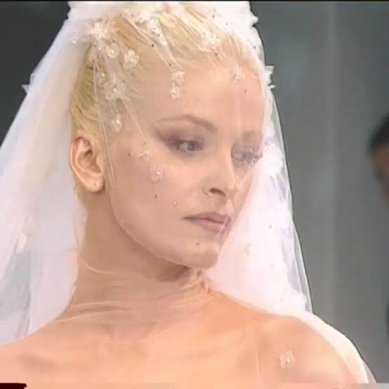 Just so obsessed with a bridal bonnet! Silver eyeshadow is a nice touch.