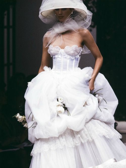 Nothing says post-war excess like a snatched waist and an Edwardian inspired automobile hat, and layers upon layers of silk tulle.