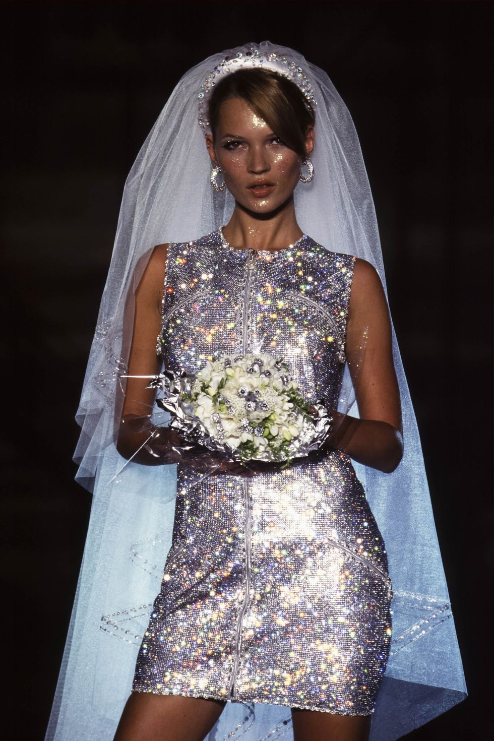 Wear silver sparkles all over your body if you really want to stand out. Add a white satin diamante headband with veil attachment for a kiss of tradition.