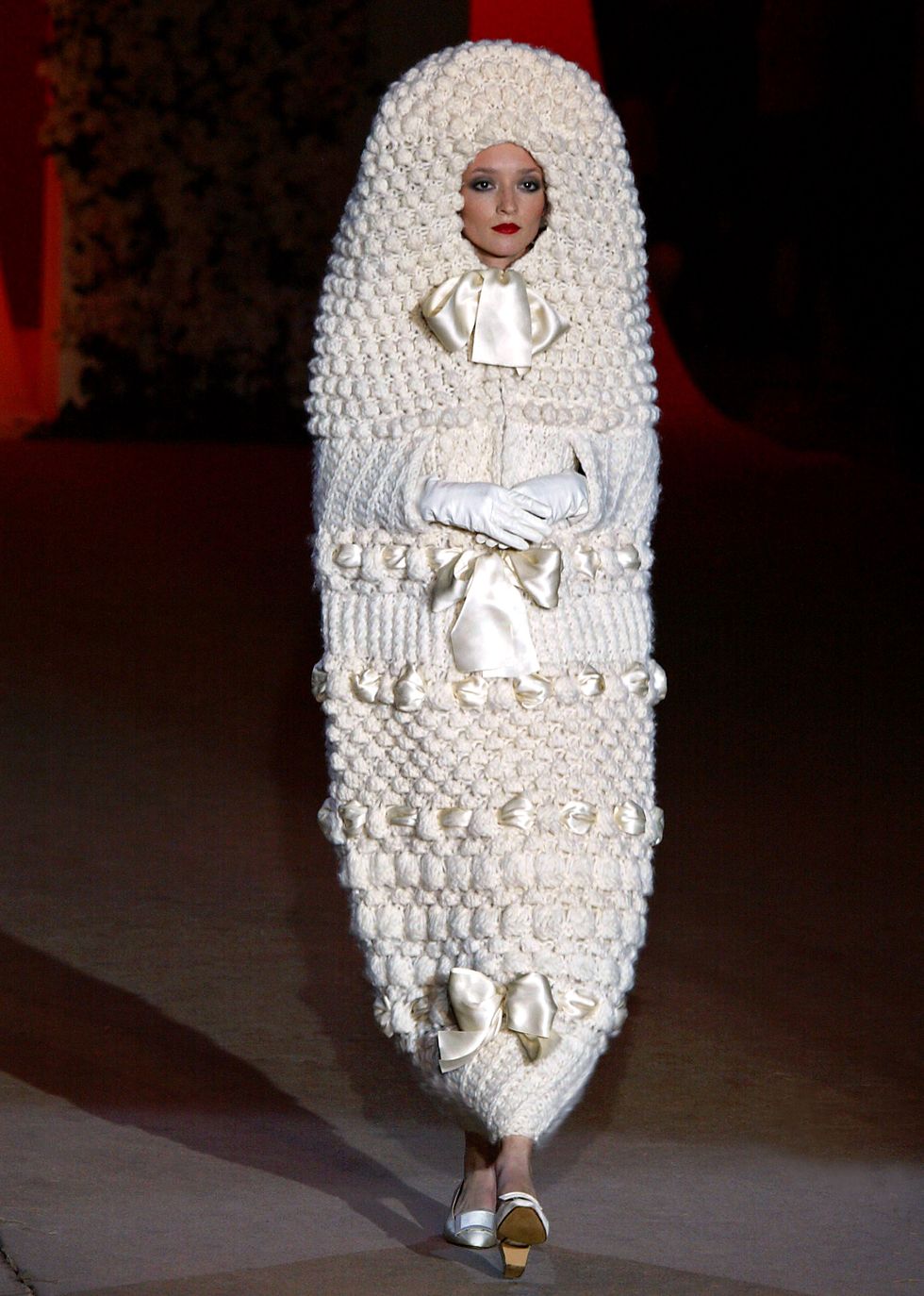 Shy? Modest? Try an intricately woollen woven cocoon then emerge like a butterfly from its chrysalis once you reach the alter.