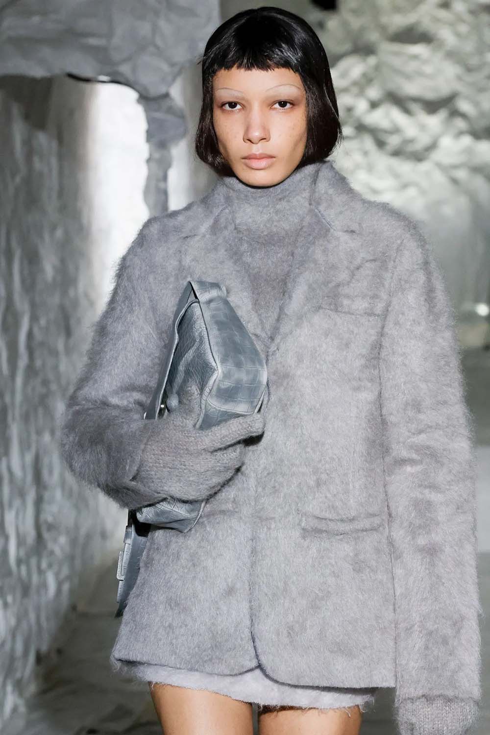 Again at Bottega, amongst the variety of makeup looks on models, some were embellished in gold or silver false lashes with a matching wrap-around liner.
