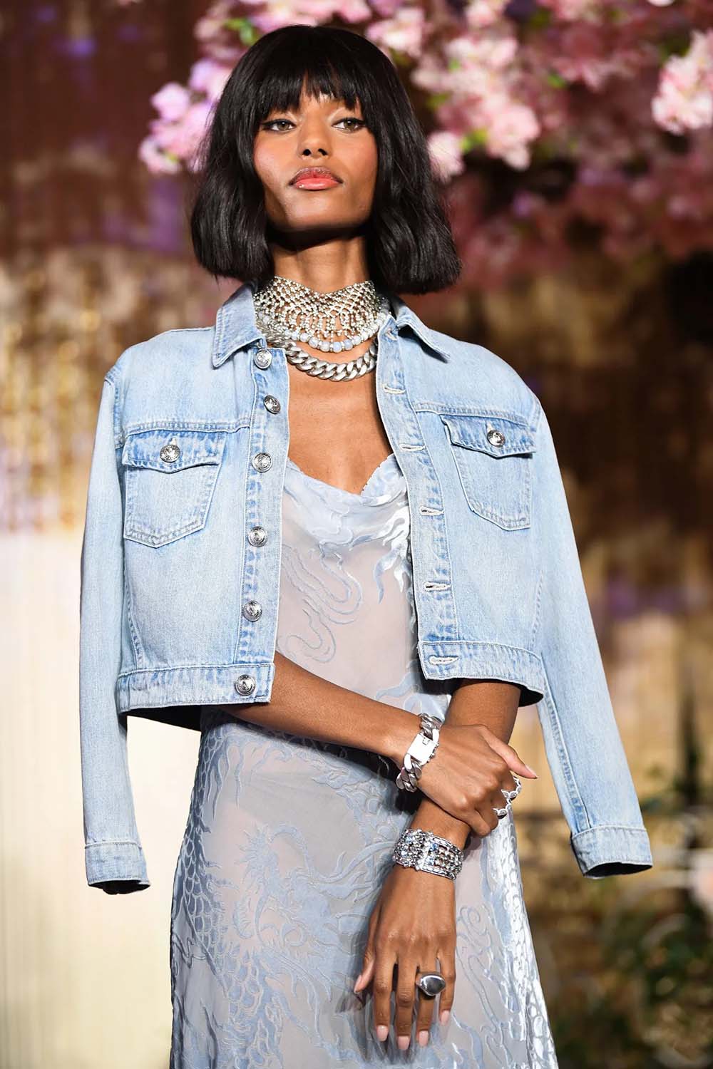 With L’Agence hair director Liz Rim created choppy shoulder-length wigs on everyone, creating a unified army of L’Agence girls with bold black liner, absolutely adding a grungy layer to what would normally be a safe, feminine collection.