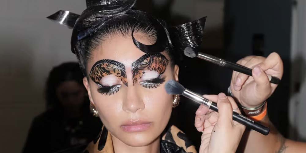 Gucci gave us triangular winged liner, and Luar took the tattoo print featured on garments and replicated it across the eyelid (completed with snakeskin print stuck on brows).