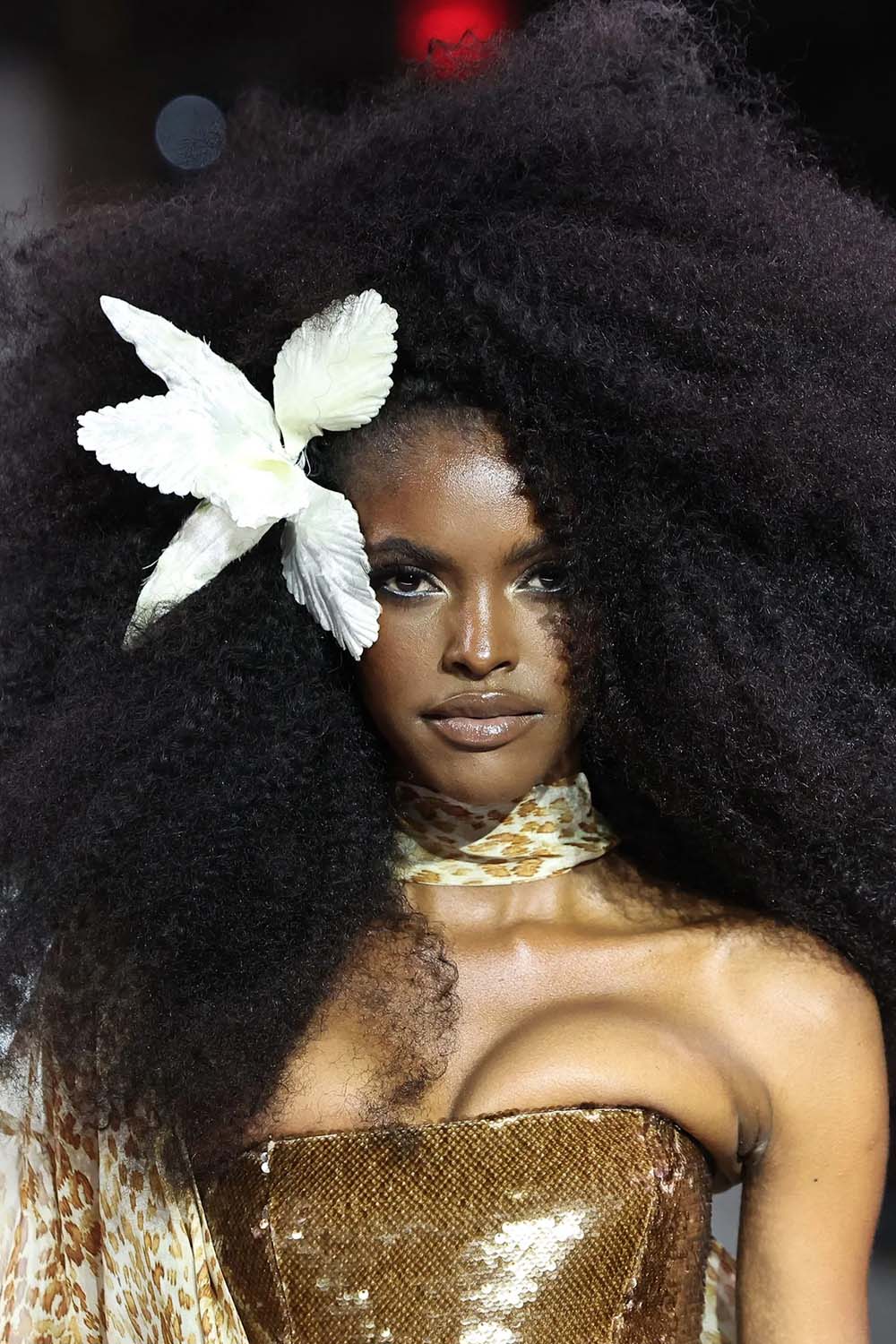 Adding the spring into Spring/Summer collections was the abundance of floral adornments in the hair.