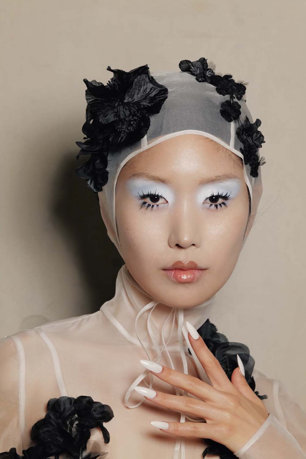 Harris Reed teamed a matte pastel eye with chunky black lashes, courtesy of Charlotte Tilbury. At Sandy Liang, the shade of pastel pink lip wasn’t far from the 2007 obsession with MAC Snob lipstick and so beautifully matched the fabrics in the collection.