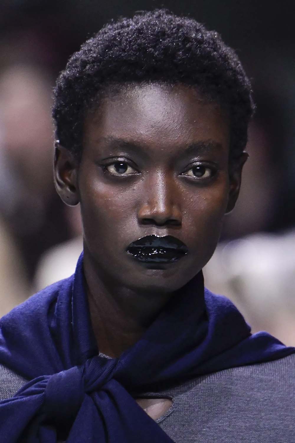At Chopova Lowena a painterly feature lip took centre stage, and the return of black lipstick was seen at many shows - most notably the black glossy lip at Prada, created by Prada Beauty Global Creative Makeup Artist Lynsey Alexander. Which she has stated that they worked for 4 days straight prior to the show on beauty trials to nail the look for this season!