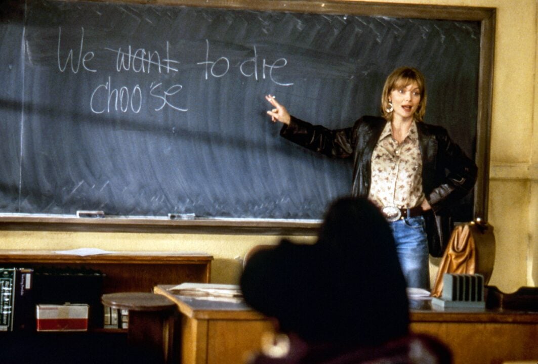 LouAnne, a retired US marine (played by 90s queenMichelle Pfeiffer), becomes a teacher in a Californian high school. But her mostly Latino and black students from an impoverished and racially segregated locality do not easily embrace her.