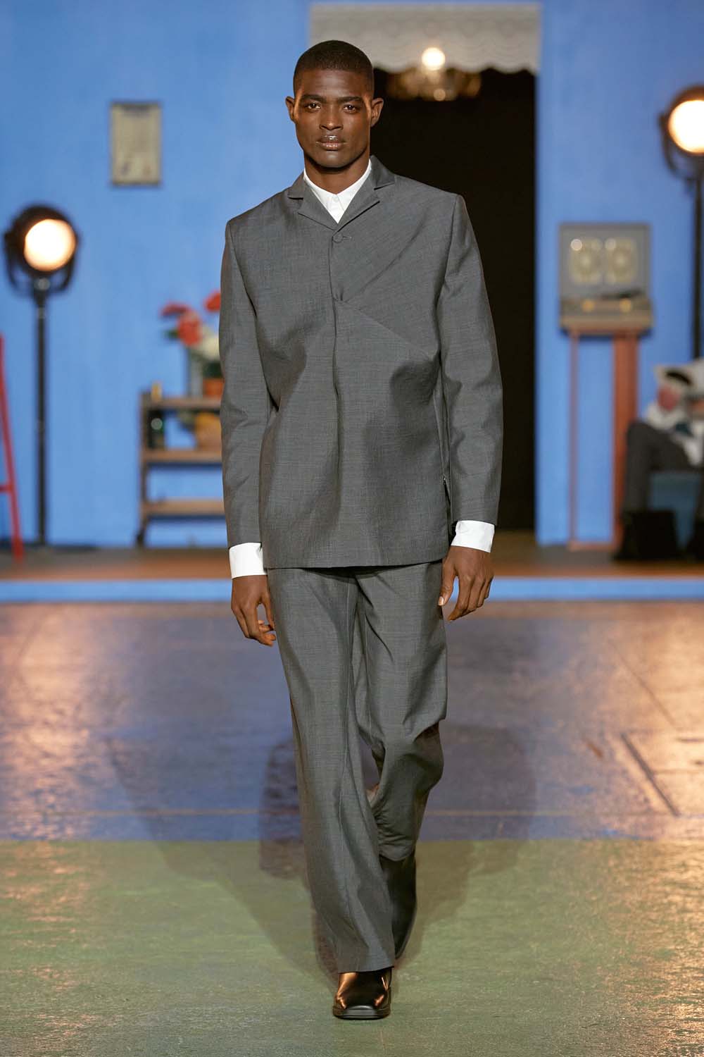 Bianca Saunders took an avant-garde approach to the suit in the opening look of her Fall 2023 collection; reworking traditionally masculine silhouettes in the tone of the season. Grey, if you need reminding.