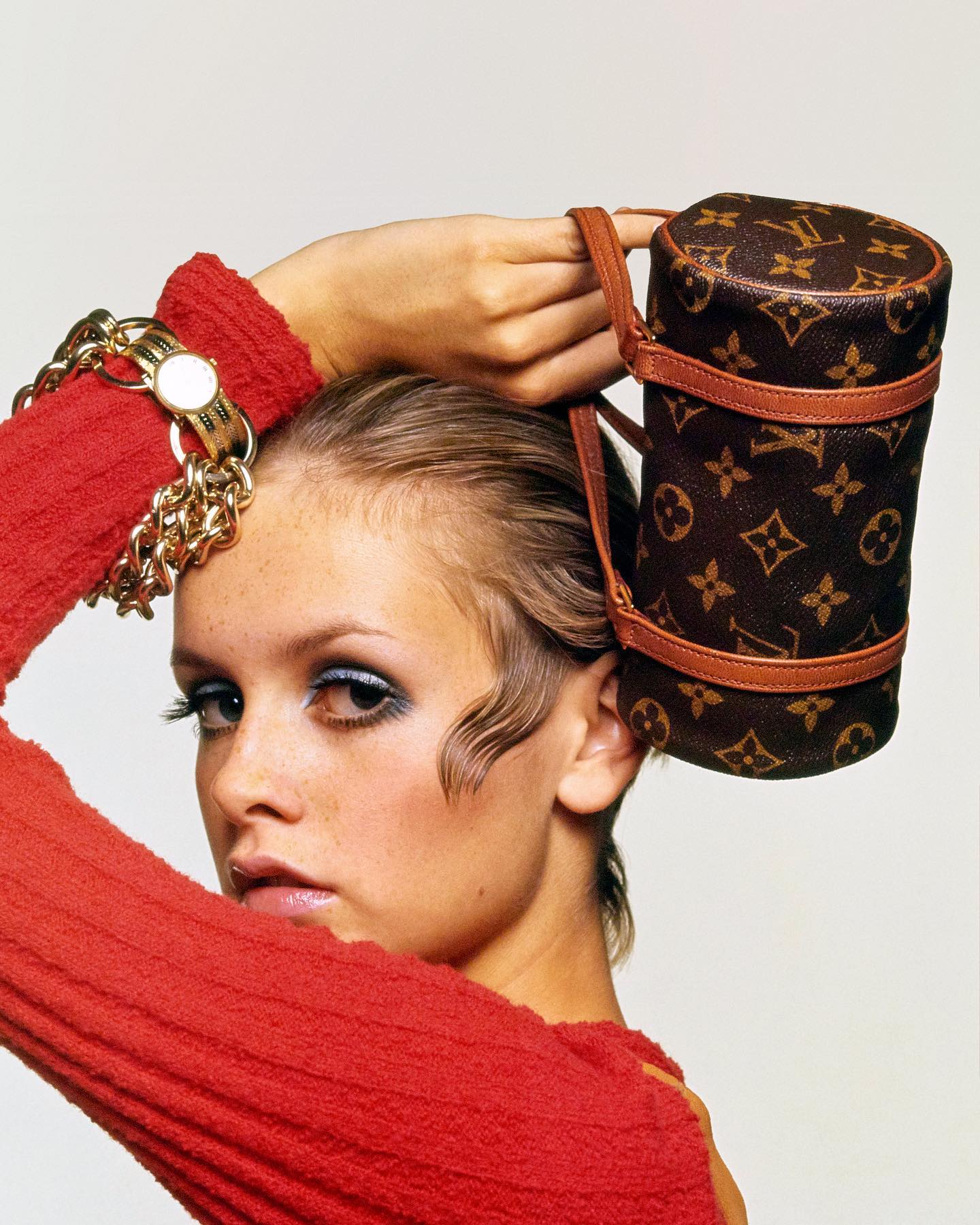 The hair, the lashes, the cheeky look: model Twiggy in 1967, in one of her most famous photo sessions.
