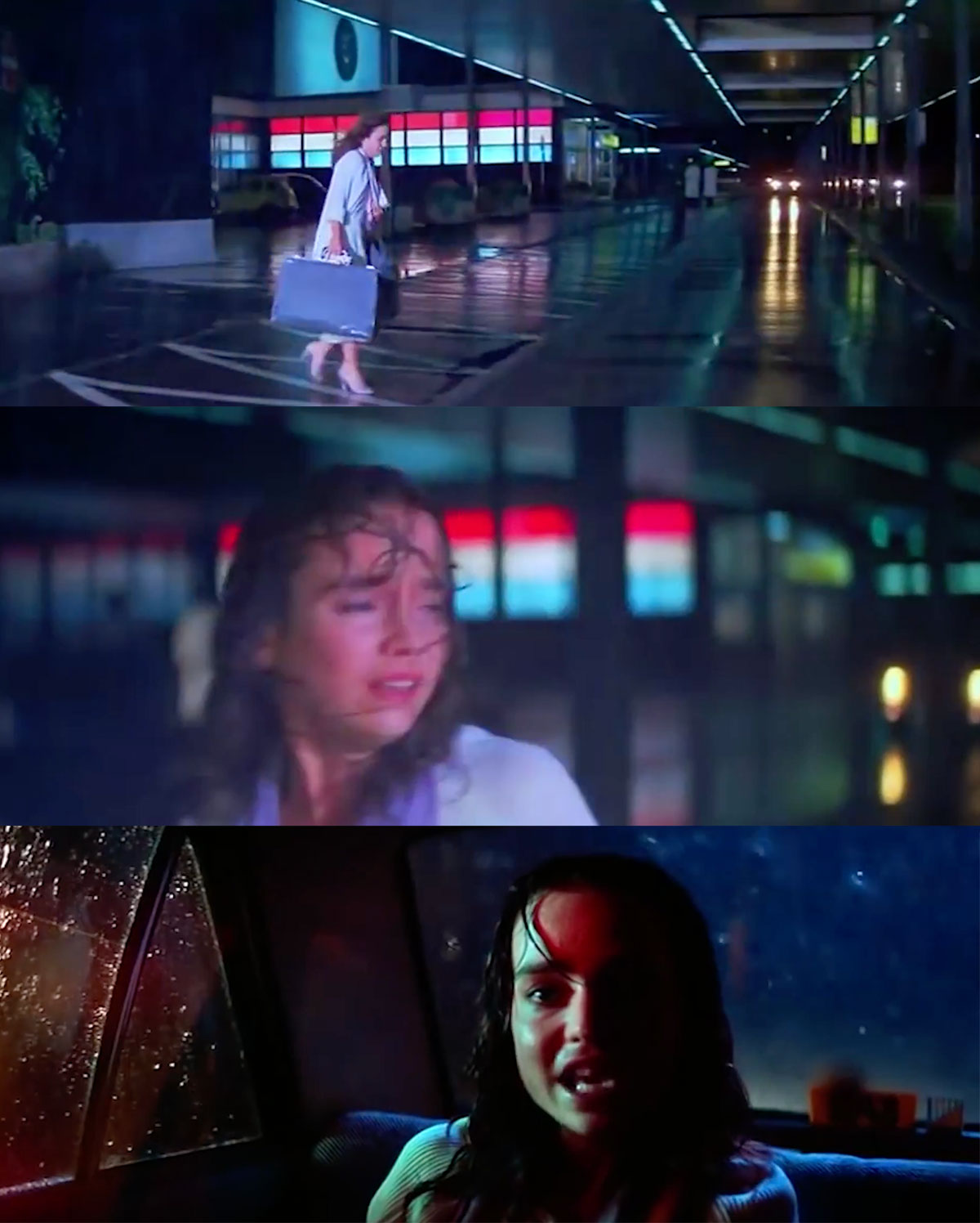 THAT scene. Only in film would hair look this chic and perfectly side-parted during torrential rain... The pearls help.