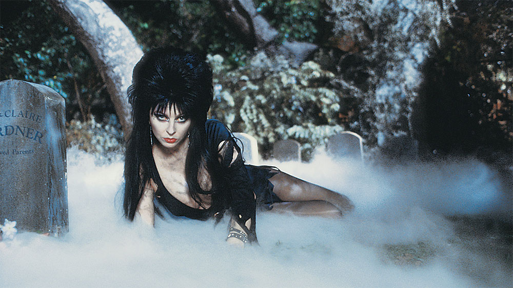 Mistress of the Dark Elvira is famous for her signature jet black hair. It's called a "knowledge bump" and was inspired by 60s girl band The Ronettes.